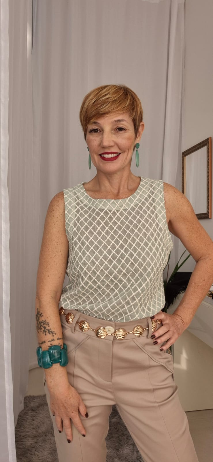 BLUSA CHIFFON BORDADO GOTA NAS COSTAS VERDE