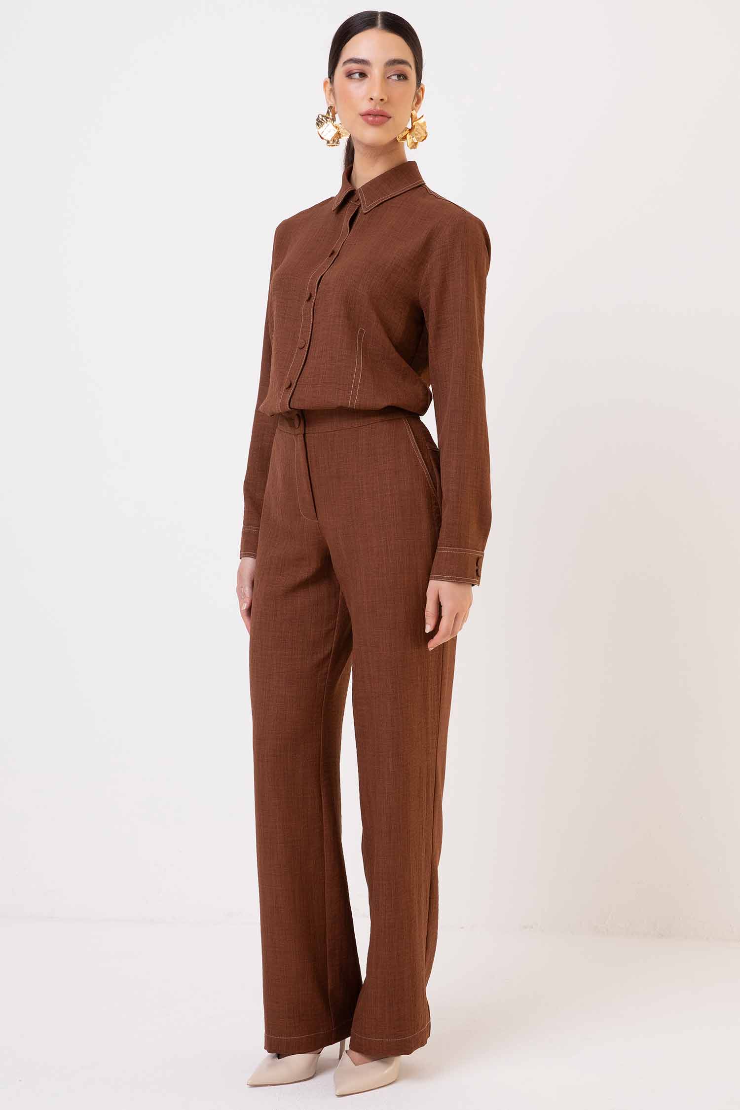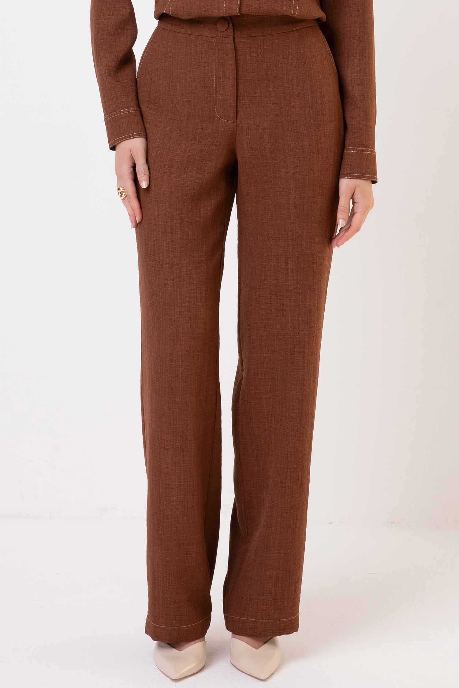 Com uma modelagem elegante e sofisticada, esta calça alfaiataria destaca-se pelos detalhes em pespontos contrastantes, que adicionam um toque de modernidade e estilo. Ideal para compor looks formais ou casuais-chiques, ela oferece conforto e versatilidade para o dia a dia. O design clean e o acabamento impecável fazem dessa peça uma opção indispensável para o guarda-roupa.