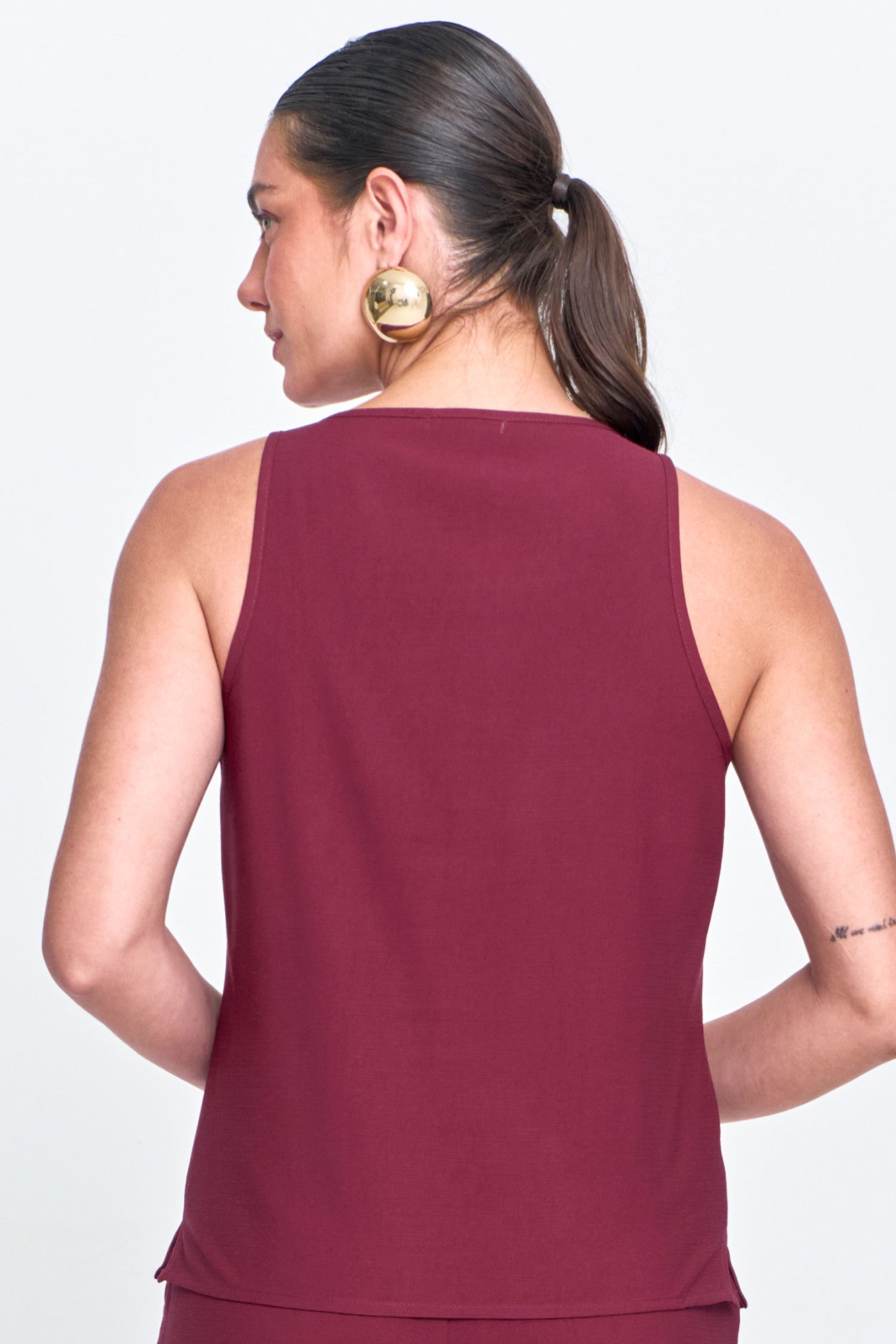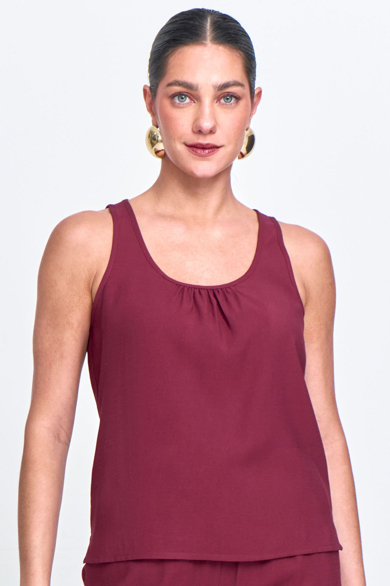 Regata Feminina Alfaiataria com Decote Redondo Franzido Vinho