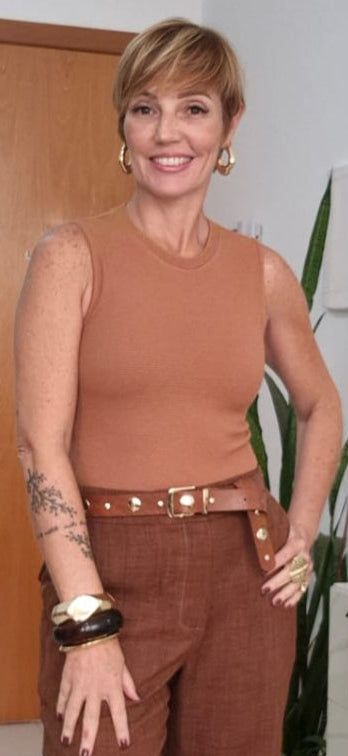 A Regata em Malha Jacquard é a escolha ideal para quem busca estilo e conforto. Composta por 90% viscose e 10% elastano, ela oferece um toque suave e ajuste perfeito ao corpo. Seu design em jacquard adiciona um charme sofisticado, ideal para looks casuais ou mais arrumados.