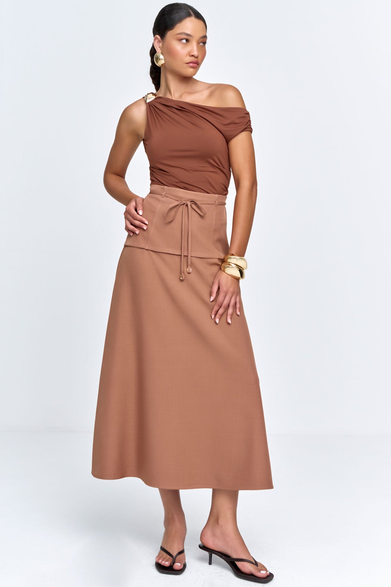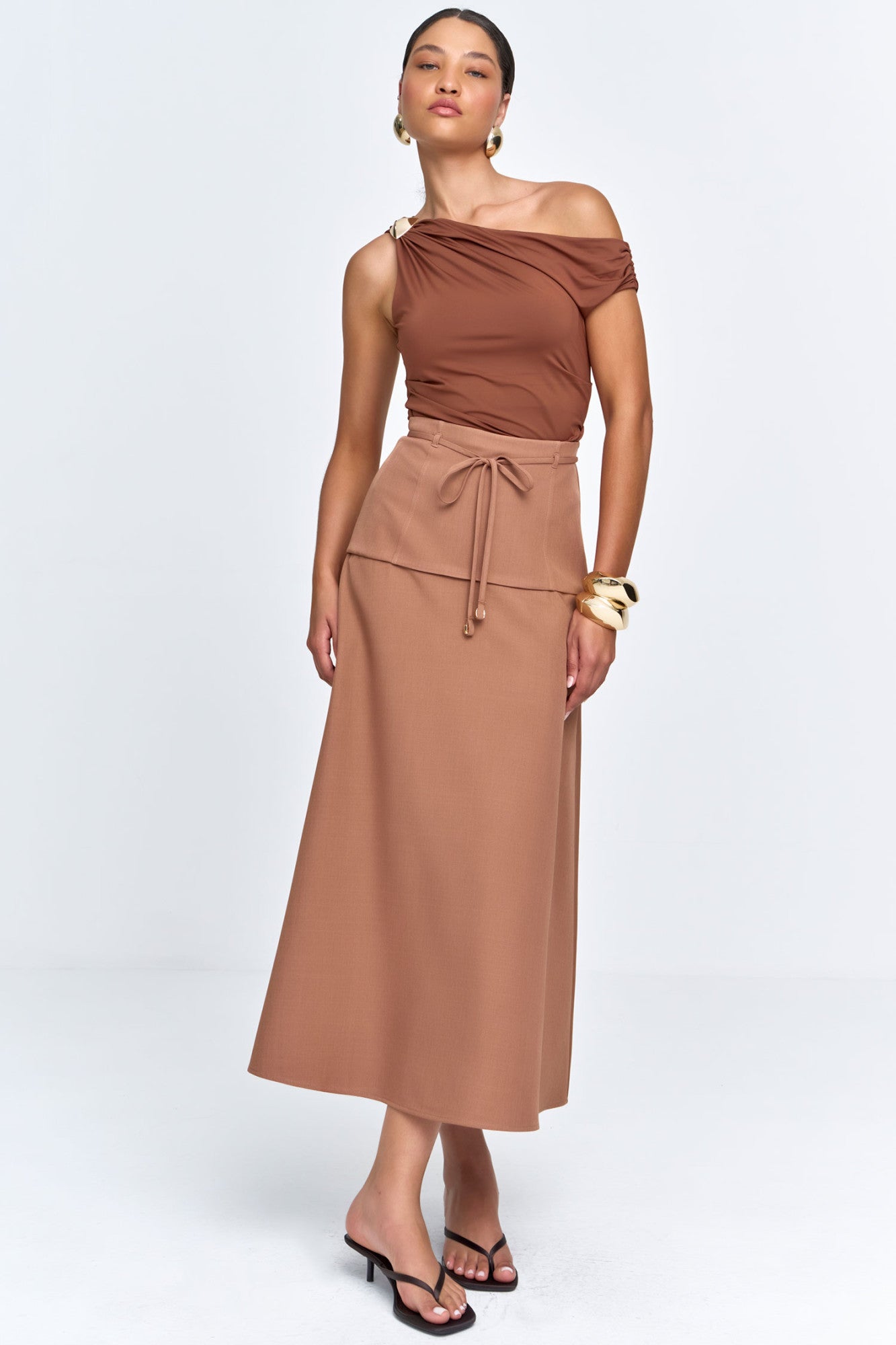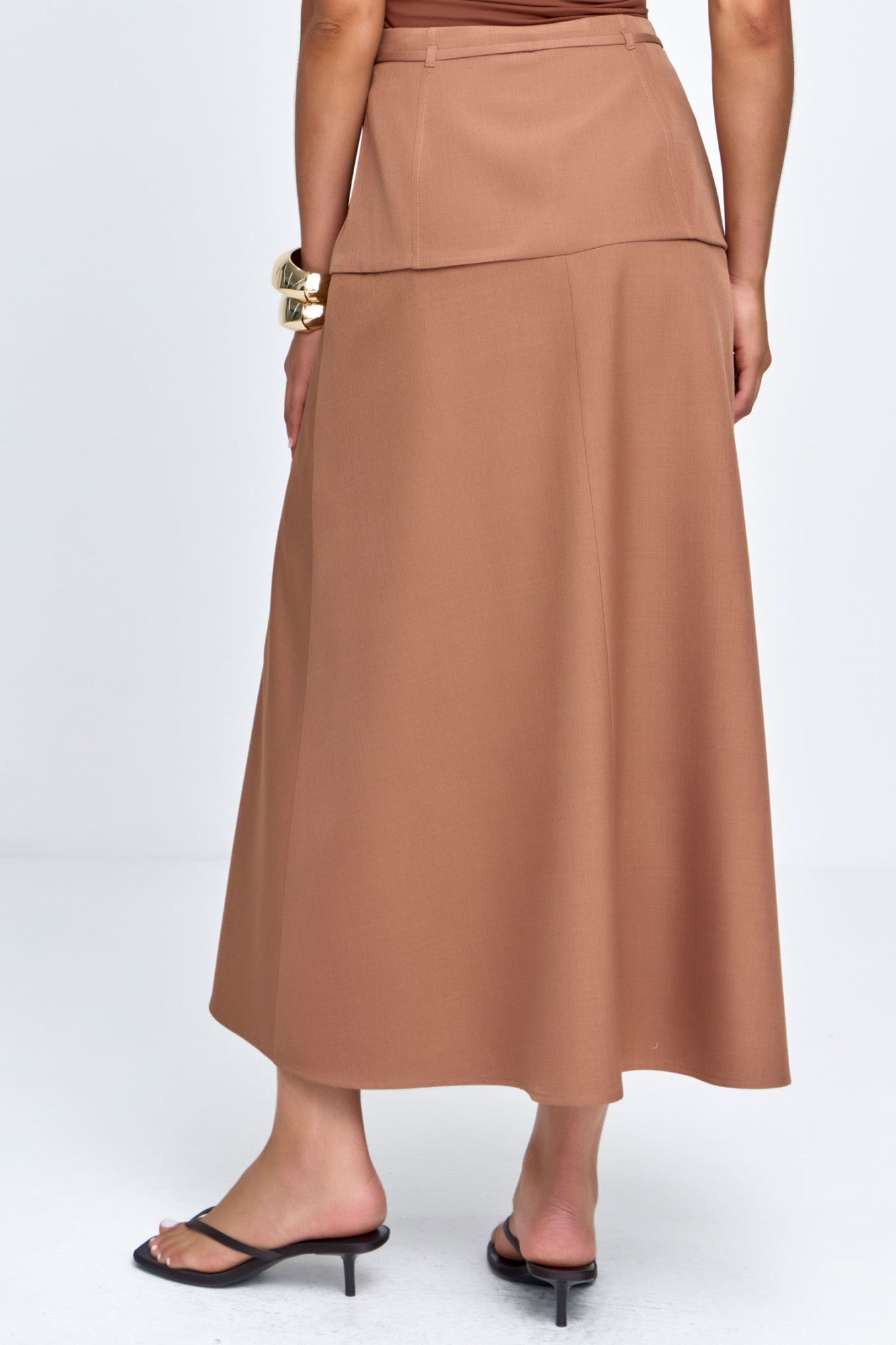 Saia Feminina Alfaiataria Passante com Cinto Mocha