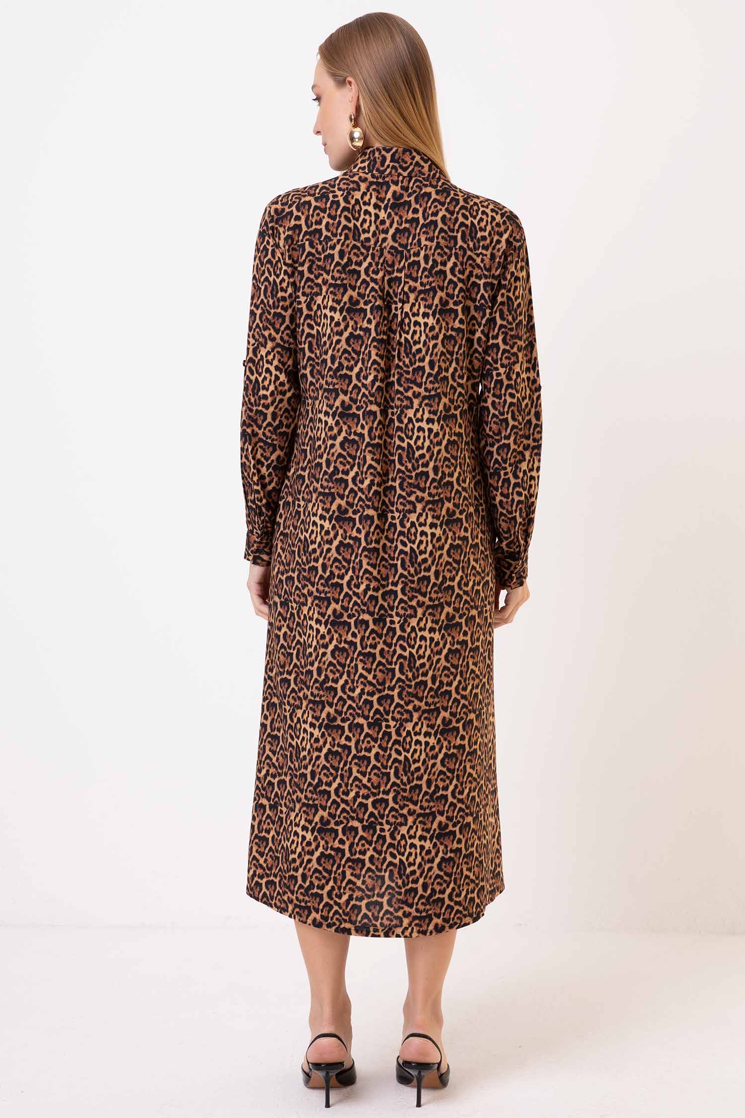 O Vestido Chemise em Viscocrepe com Estampa de Onça é a peça perfeita para quem busca elegância e modernidade. Com manga longa e comprimento midi, oferece um caimento sofisticado e confortável. O tecido leve e fluido proporciona movimento, enquanto a estampa animal print garante um toque fashion e ousado. Ideal para diversas ocasiões, pode ser usado com salto para um look refinado ou com tênis para um visual despojado e estiloso.
